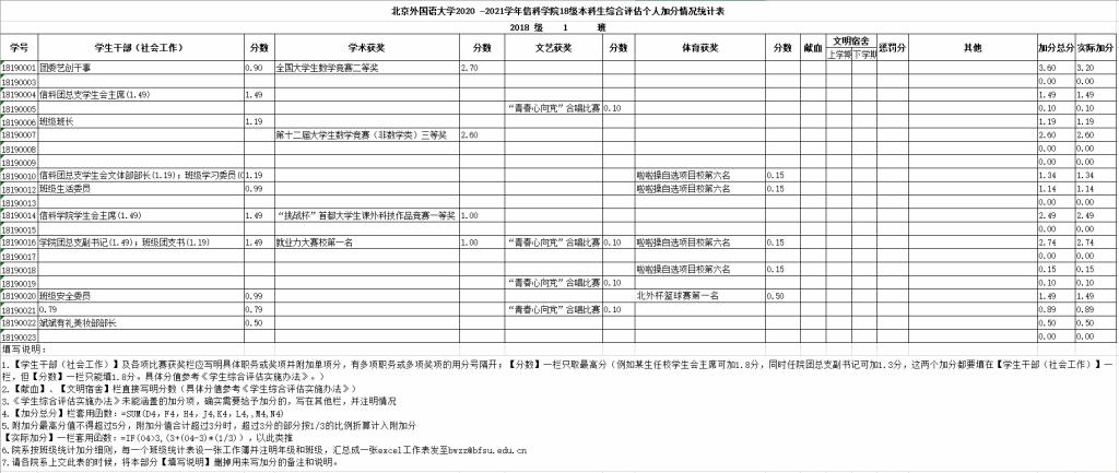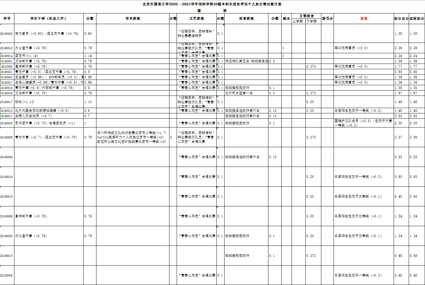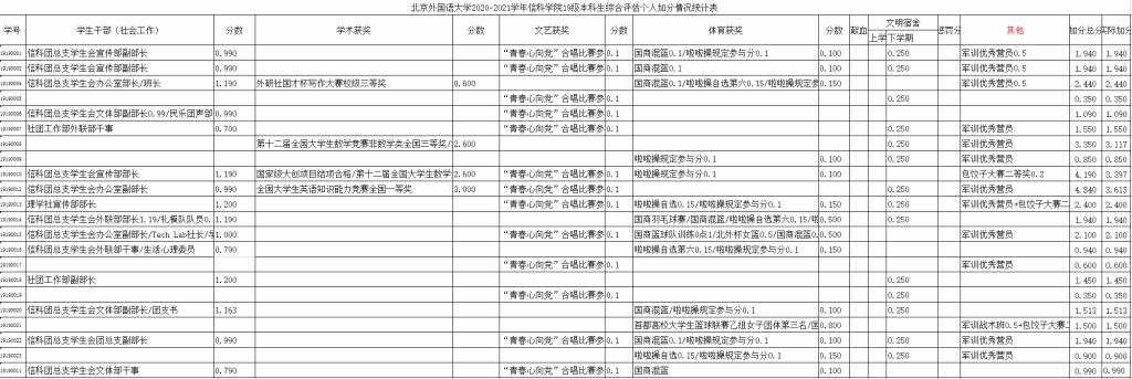 北外信科学院2020-2021学年本科生综合评估个人加分名单公示